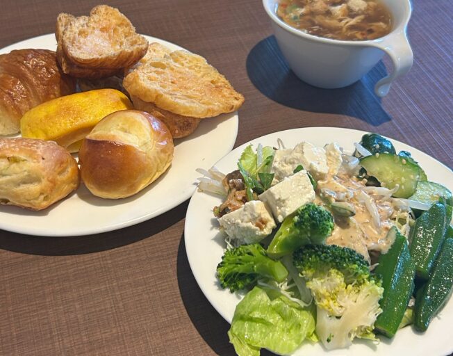 さらに別料金ですが、スープバーと焼きたてパンが食べ放題のブレッドバーも大人気。